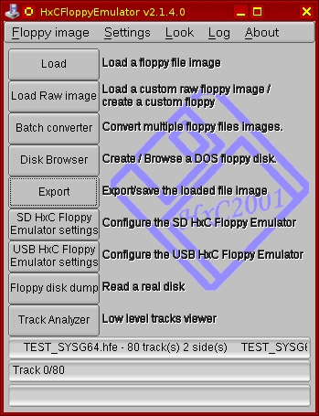 Am convertit apoi imaginea RAW în imagine HFE folosind HxCFloppyEmulator.exe, am pus-o pe un SD Card și în emulator am instalat sistemul pe ea cu procedeul descris la începutul acestei pagini.