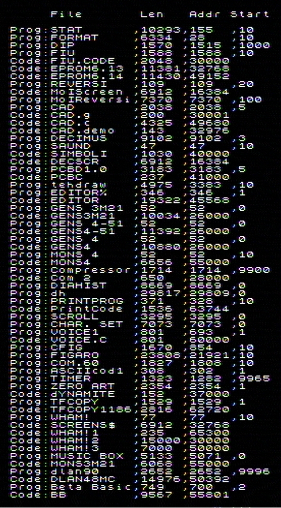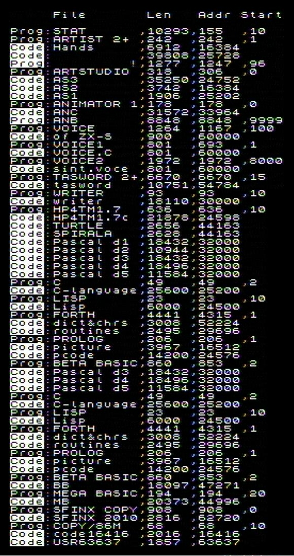 Am menționat mai sus că există un caz excepțional în care blocuri headerless pot fi stocate pe un floppy disc DEVIL. Este cazul în care unul sau mai multe blocuri headerless consecutive avînd fiecare cîte un Flag byte = $FF și care urmează imediat după un bloc de date standard (Program sau Code). În acest caz, octeții headerless sînt stocați imediat după sfîrșitul octeților din blocul de date standard (dacă blocul de date standard ocupă mai puțin decît un multiplu de 9 KB, octeții headerless vor fi stocați începînd cu primul octet nefolosit din ultima pistă ocupată de datele blocului standard). |