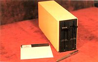 Aside from this purpose, the floppy disk drive is also used for data storage on or data loading from floppy disks. The speed of data flow between the floppy drive and the computer is 250 Kbit/s. There are various commands for working with floppy disks: „LOAD” and „SAVE” for writing to disk or loading into memory, „OPEN” and „CLOSE” for opening or closing files, „ERASE” for erasing etc.