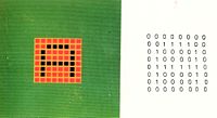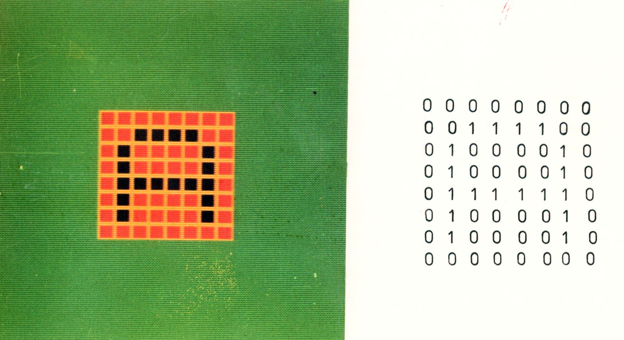 In the video memory, each pixel on the screen is assigned one bit. This has a 1 value if it corresponds to the shape of a character („ink”) or a 0 value if it corresponds to the background („paper”)