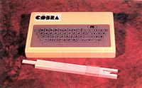 Mass-produced CoBra models have the back panel changed. Thus they have a connector for the power source, a RESET button, male connectors for the expansion slot and the floppy disk drive, two Joystick connectors, two connectors for coaxial cable (tape recorder and auxiliary) and another two special connectors for monitor and serial (RS232)[1]