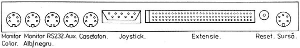 Five connectors (the ones for color monitor, B/W monitor, RS 232, aux, tape) use coaxial cable and the others (Joystick, expansion and the power source) are special.