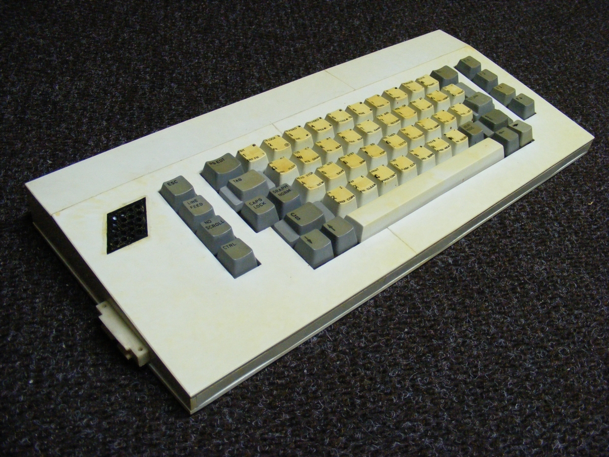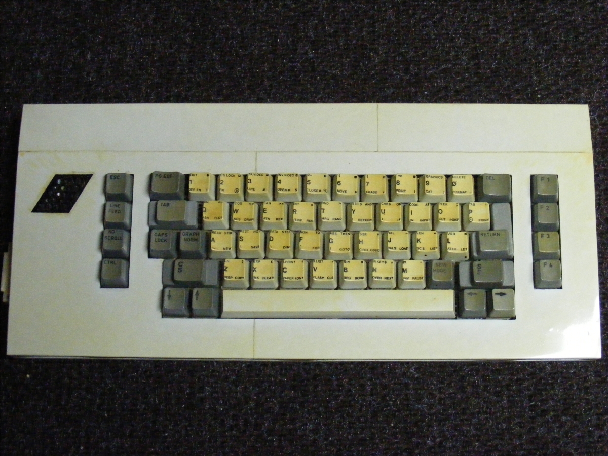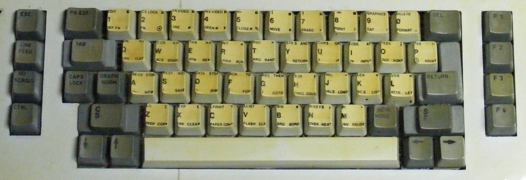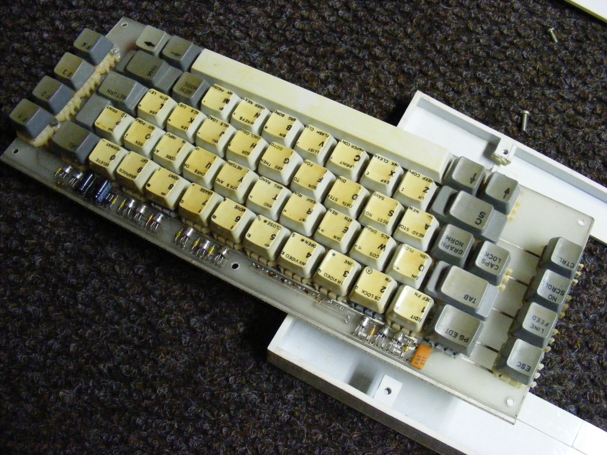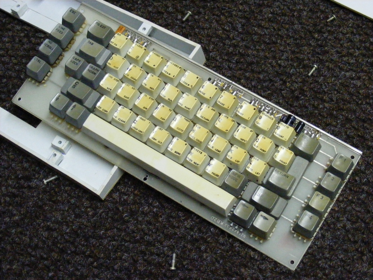 Layout-ul tastaturii originale este cel din fotografia de mai jos, care arată tastatura asamblată şi folosită de mine la începutul anilor '90. În caz că vă întrebaţi de ce tastele sînt cam îngălbenite, este din cauză că la vremea respectivă, după ce am terminat de asamblat tastatura, am decis să aplic peste faţa inscripţionată a tastelor nişte lac de unghii transparent pentru a proteja inscripţiile contra ştergerii prin frecare la contactul cu degetele. La vremea respectivă lacul era perfect transparent, dar în timp s-a ingălbenit.